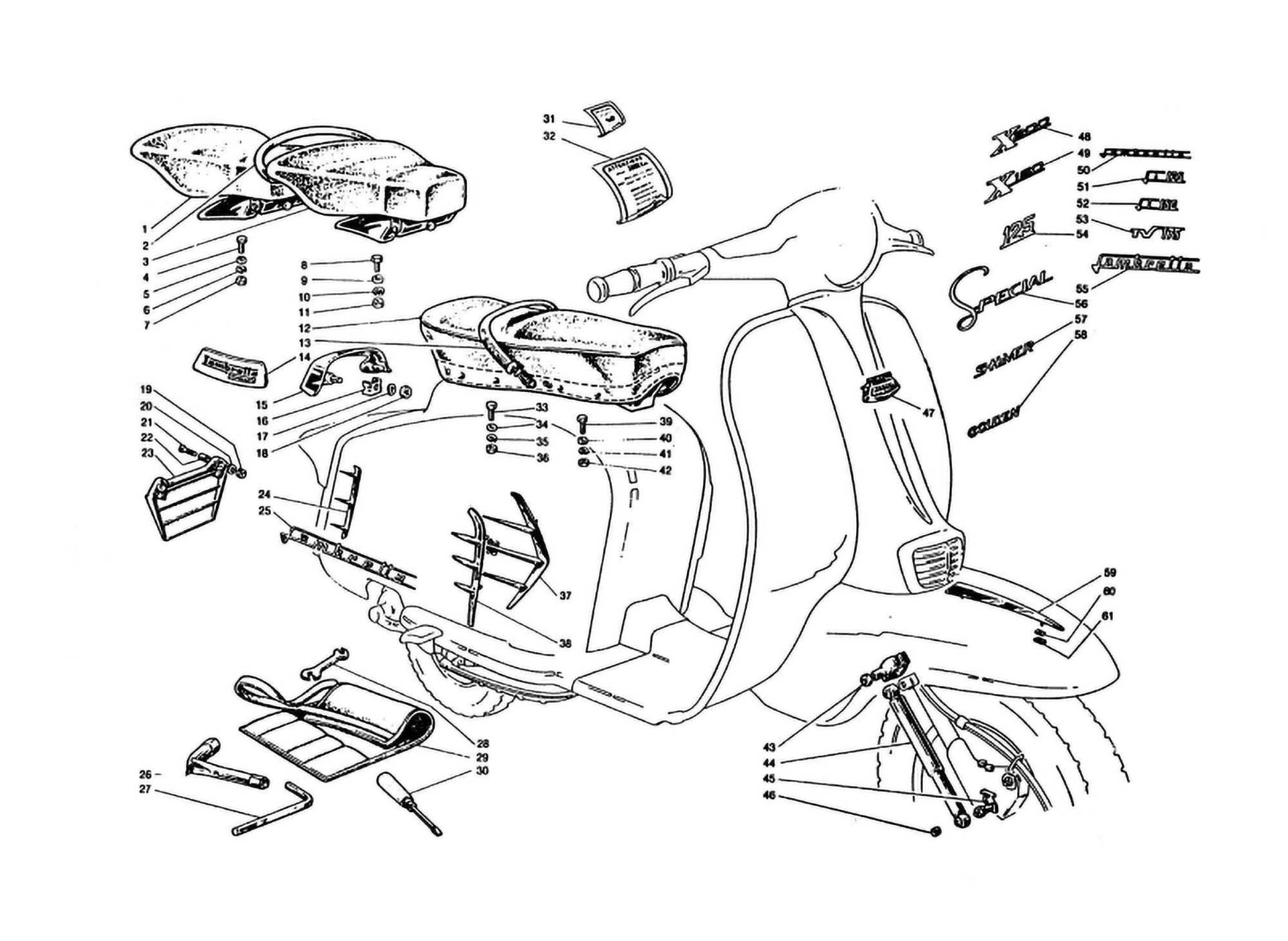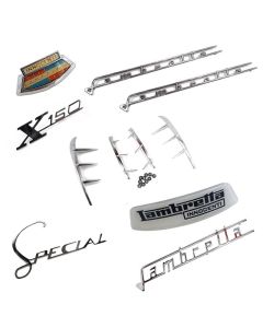Badges & Trim. In this section you will find all badge and trim parts for Lambretta LI125, LI150, TV175, TV200, 125 Special, SX150, SX200, DL125, DL150, DL200 & GP125, GP150 & GP200 models from years 1959 until 1971. You will find parts such as rear frame grills, rear frame badge holders, rear frame badges, horncast badges, legshield badges, fuel stickers, running in decals & mudguard flashes.