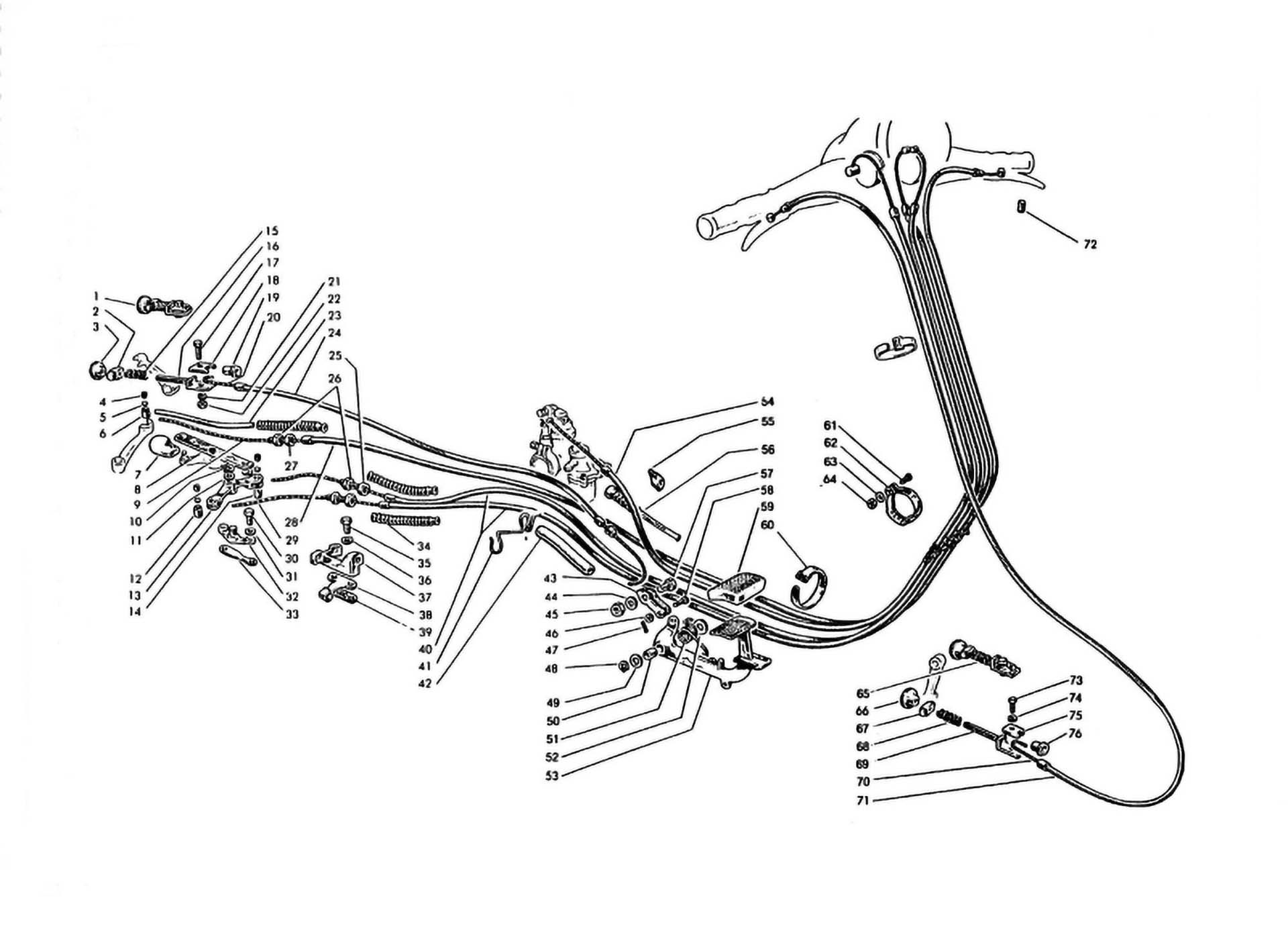 Cables & Controls. In this section you will find all cable and control parts for Lambretta LI125, LI150, TV175, TV200, 125 Special, SX150, SX200, DL125, DL150, DL200 & GP125, GP150 & GP200 models from years 1959 until 1971. You will find parts such as cables sets, cable adjusters, cable trunnions, inner cables, cable clamps, cable top hats, gear arms, tie rods, choke guides, loom ties, brake springs, brake bushes & grease nipples.