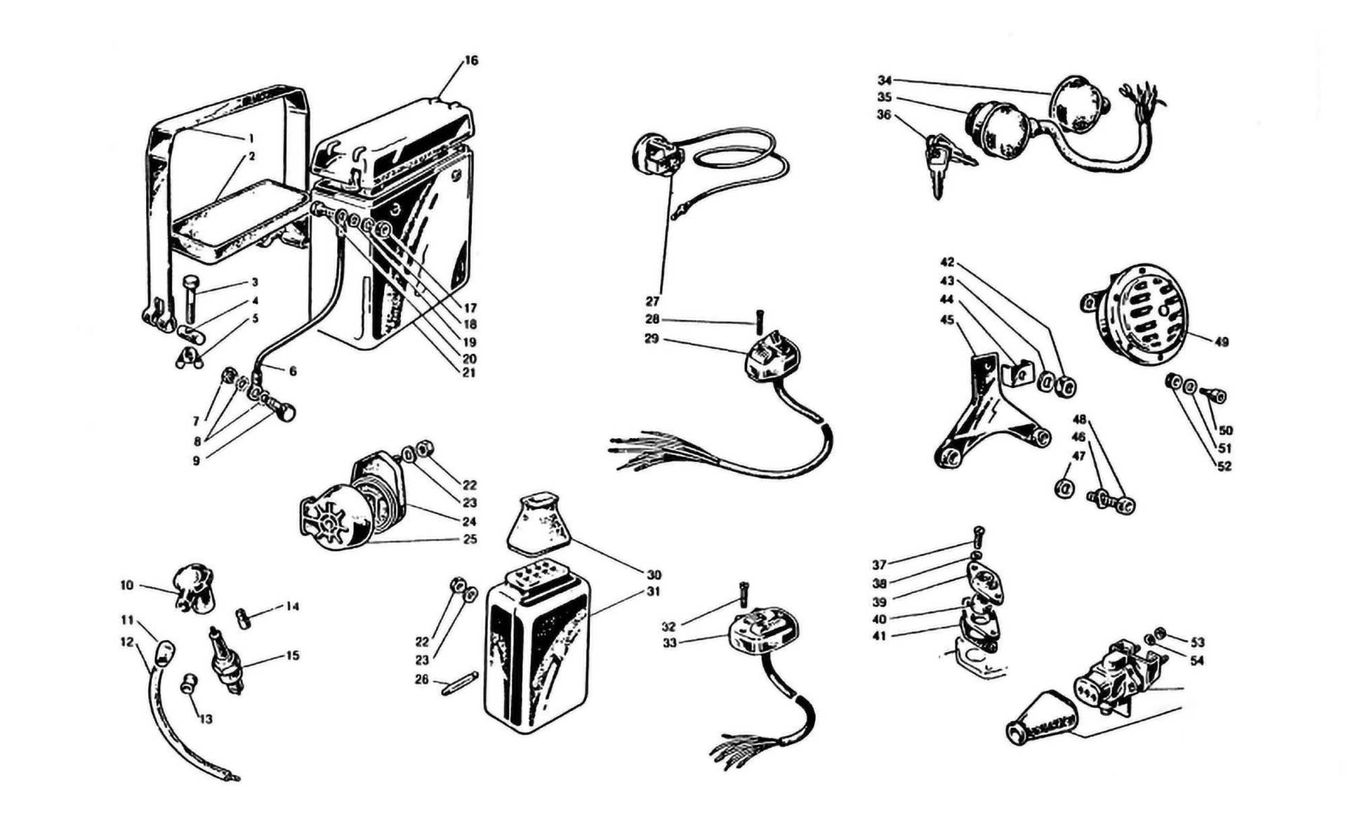 Electrical. In this section you will find all electrical parts for Lambretta LI125, LI150, TV175, TV200, 125 Special, SX150, SX200, DL125, DL150, DL200 & GP125, GP150 & GP200 models from years 1959 until 1971. You will find parts such as headlamps, tail lamps, lenses, screws, light switches, brake light switches, ignition switches, gaskets, bulbs, spark plugs, spark plug caps, HT lead, batteries, junction boxes, cut out buttons, flywheel covers & flywheel nuts.