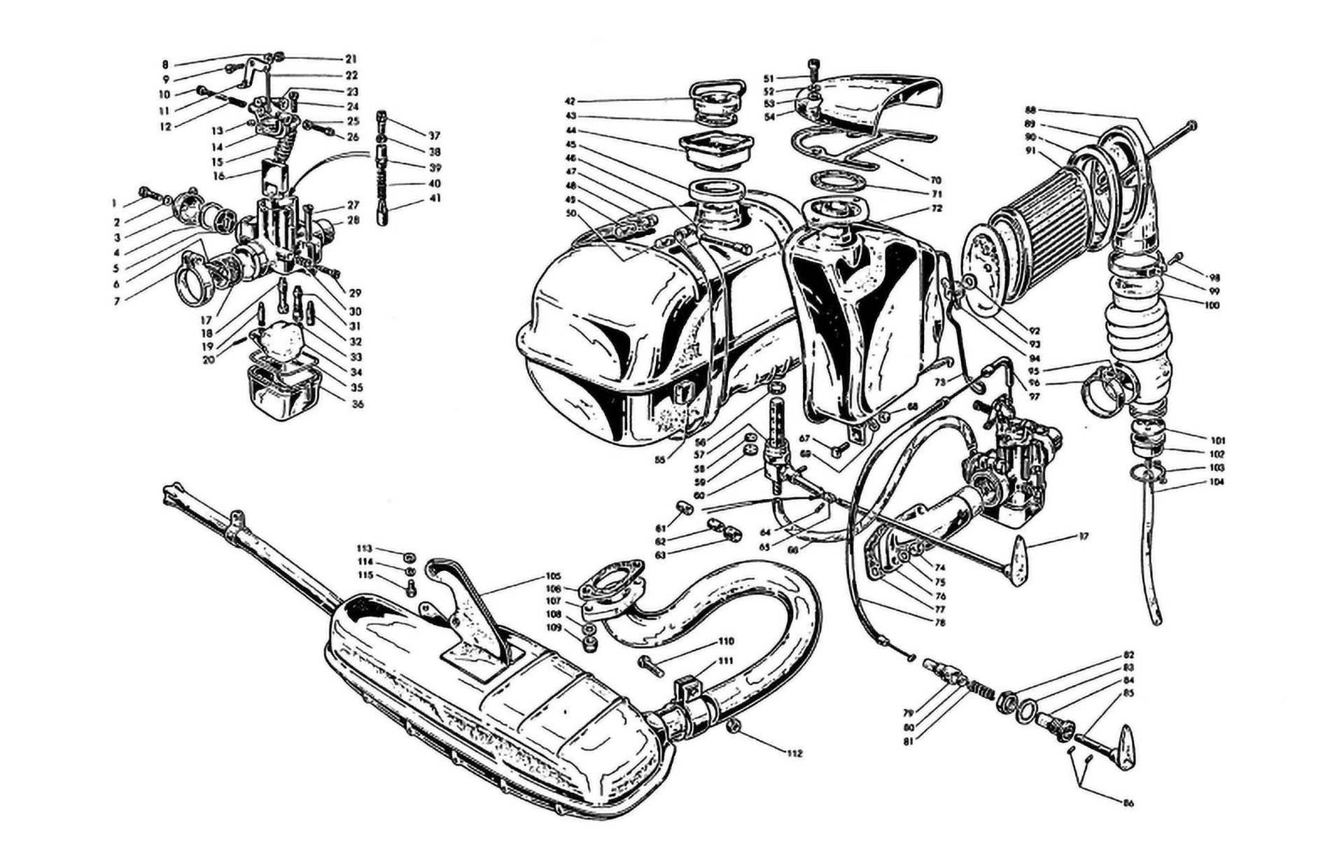 Fuel & Exhaust. In this section you will find all fuel and exhaust parts for Lambretta LI125, LI150, TV175, TV200, 125 Special, SX150, SX200, DL125, DL150, DL200 & GP125, GP150 & GP200 models from years 1959 until 1971. You will find parts such as exhausts, tank straps, tank trunnions, fuel tanks, bolts, nuts, washers, inlet manifolds, gaskets, choke units, fuel pipe, fuel taps, fuel tap levers, air hoses, air filters & exhaust nuts.