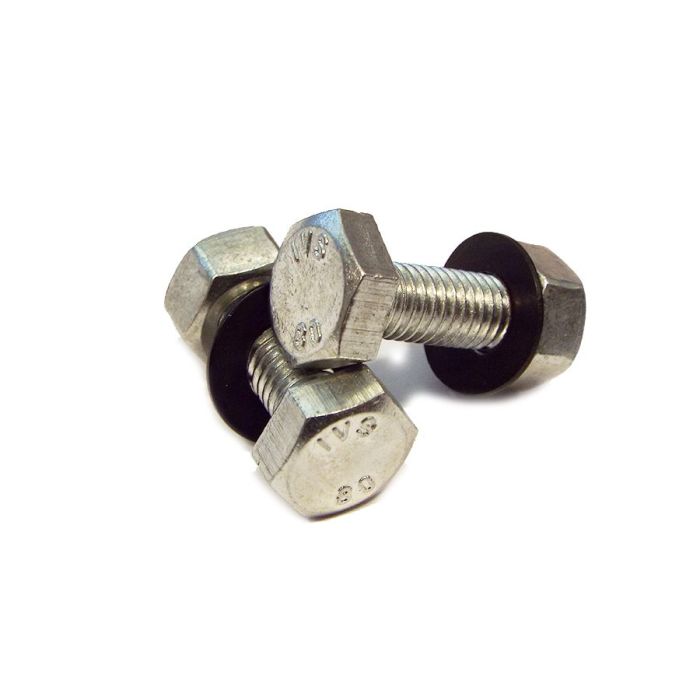 Scootopia made Lambretta series 3 & DL/GP IVS marked zinc rear frame leg bolt, nut and washer set. IVS were the OEM manufacturer for Lambretta, its all in the detail